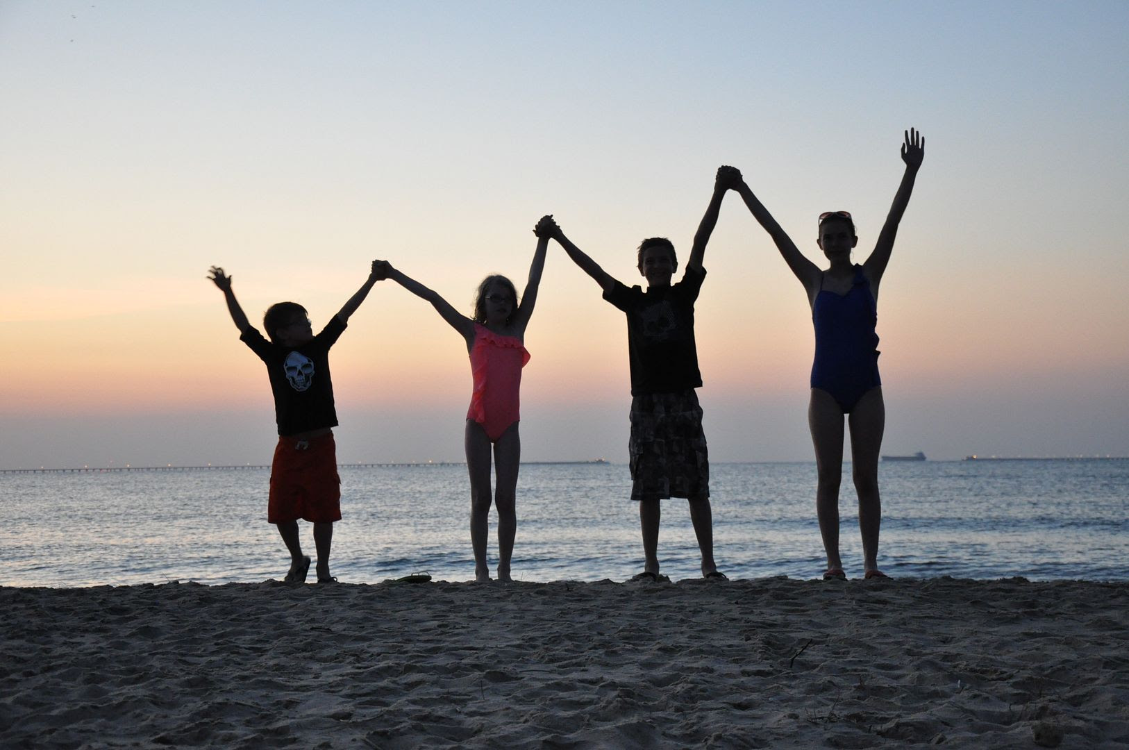 Just after the sun set, I grabbed the kids to take a couple of final shots. They didn't seem to mind it when I told them all to hold hands and throw them up in the air. I must have asked them to do sillier things in public before.